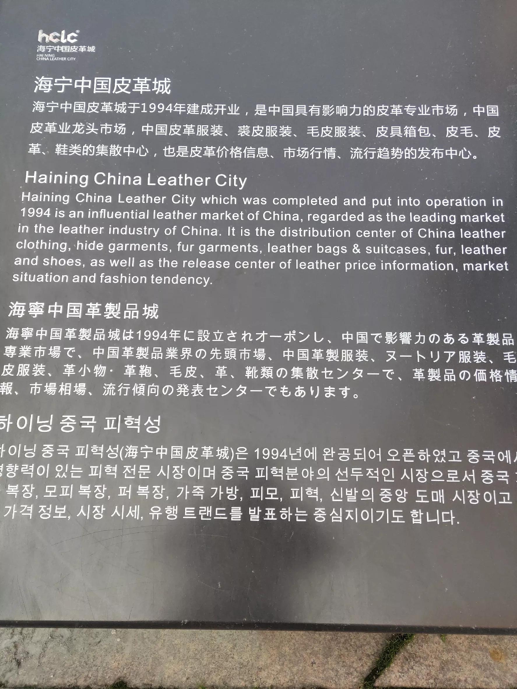 家离皮革城非常近,开车10分钟可达。海宁皮革城给我的第一印象是大,第二印象是品牌多、精品琳琅满目。这里是女人的购物天堂,早年有则新闻:海宁皮革城一件镇店裘皮卖出20万的价格,轰动一时;现在天价裘皮的时代一去不复返,实惠点的裘皮三、五千就可以买到。海宁中国皮革城于1994年建成开业,位于海宁市海洲西路201号,它是中国最具有影响力的皮革专业市场,被誉为中国皮革“风向标”,皮革服装、裘皮服装、毛皮服装、皮具箱包、皮毛、皮革、鞋类等应有尽有,它也是皮革价格信息、市场行情、流行趋势的发布中心。