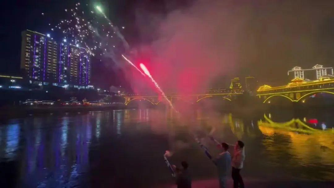 和家人一起放烟花